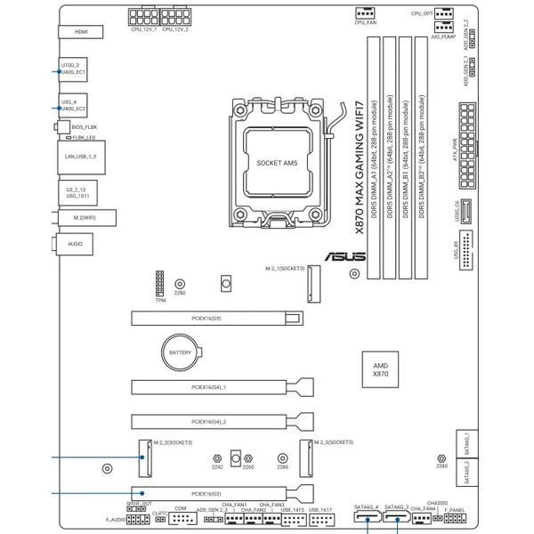 Socket AM5 - AMD X870 Chipset - WIFI7 - 4x DDR5 - ATX - MAX Series