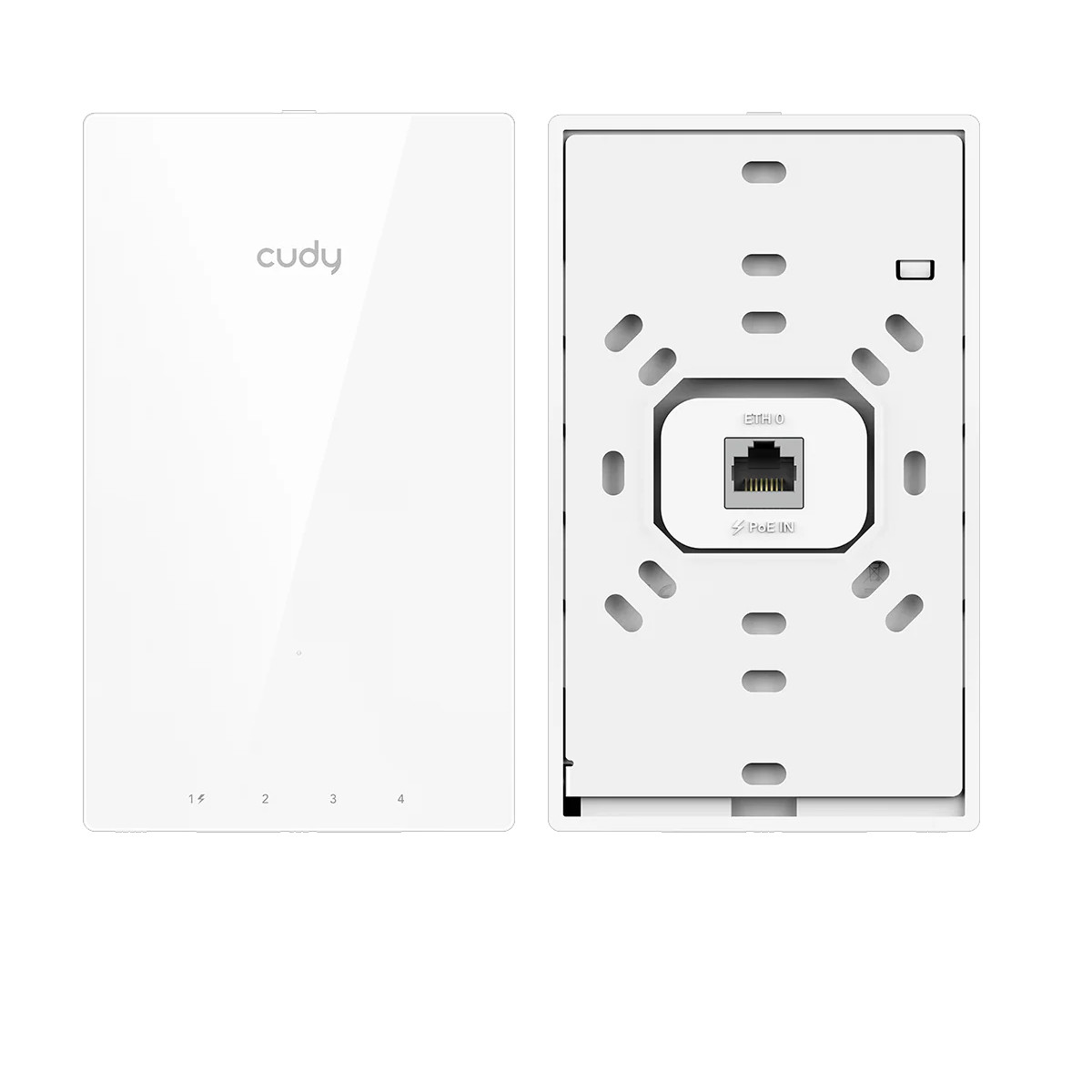 AX3000 Dual Band Wi-Fi 6 Wall Plate Access Point, 1 x Gigabit PoE-IN Port, 4 x Gigabit RJ45 ports, LAN1 support PoE Out, Cudy Mesh Support