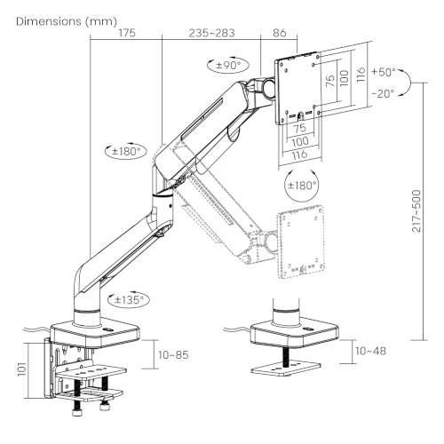 Single Monitor Heavy Duty RGB Gaming Gas Spring Arm For 17-49 Inch Monitors, up to 20kg. - White